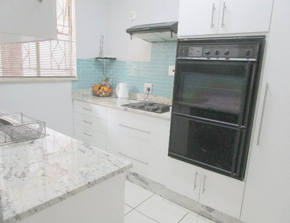 The kitchen is well-appointed with granite countertops, ample cupboard space, and an eye-level oven a practical and stylish setting for home cooking,