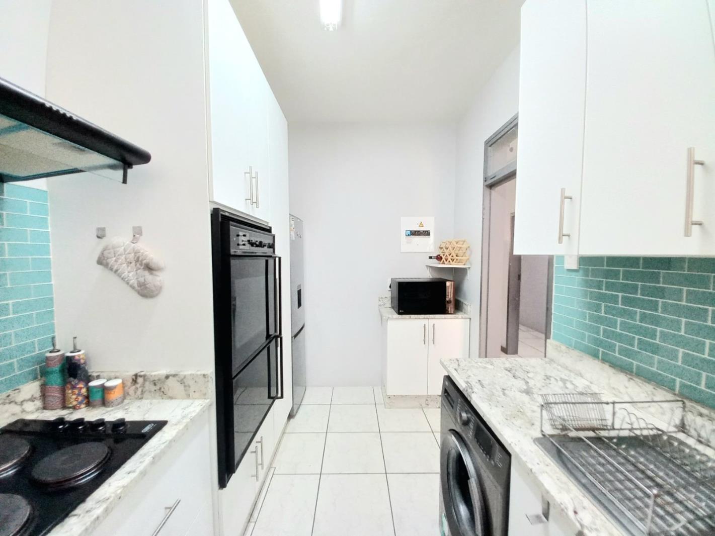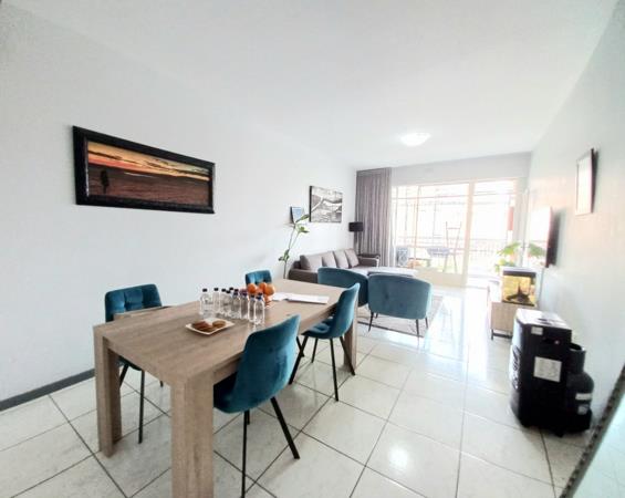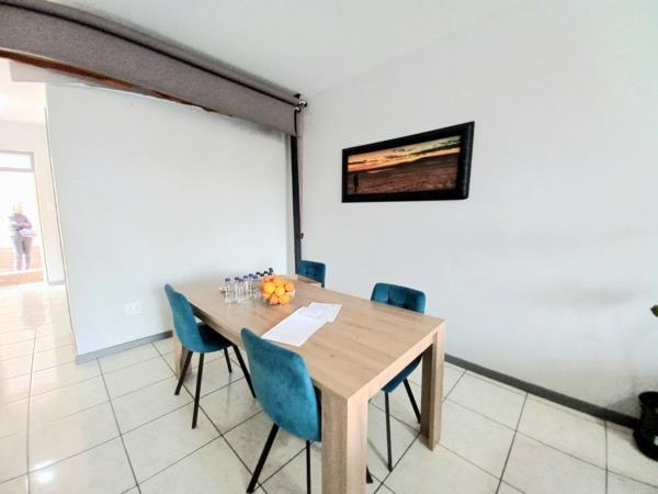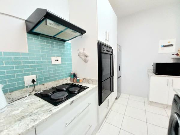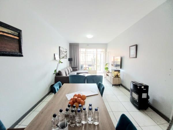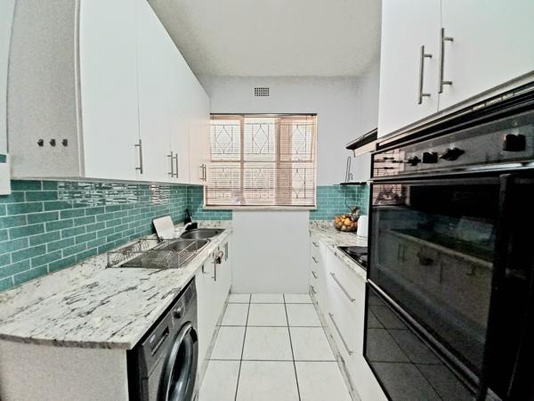 This beautifully maintained 95sqm ground floor apartment is situated in the heart of Eastleigh, Edenvale, close to all major amenities. The kitchen is both stylish and functional, featuring granite countertops, plenty of built-in cupboards, electric stove, extractor fan, eye-level oven, and space for a front loader washing machine. The open plan dining room flows seamlessly into the spacious tiled lounge, which leads out to an enclosed balcony and a shared garden area with a built-in concrete table and benchesideal for entertaining or enjoying a relaxed braai.