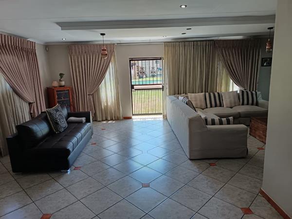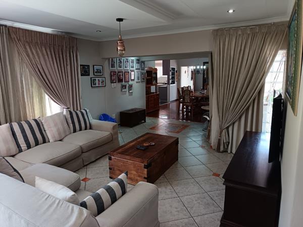 Large open plan living area with family lounge and entertainment lounge leading to pool area.