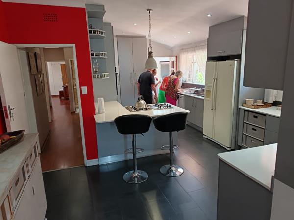 The dining room leads onto the large modern kitchen with granite tops and a gas hob.