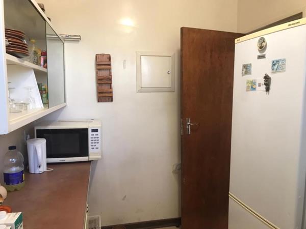 The apartment features a bright and airy lounge, perfect for relaxing or entertaining, with ample space for both living and dining. The kitchen is functional and well-sized, offering plenty of cupboard space and room for your appliances. The bedroom is generously sized with built-in cupboards, while the bathroom is fitted with a bath, basin, and toilet neat and practical.