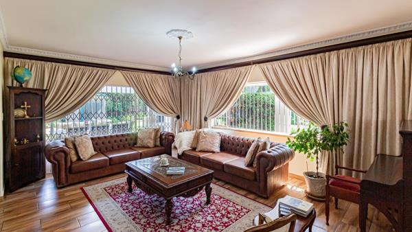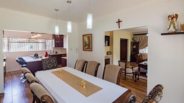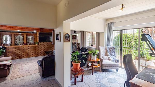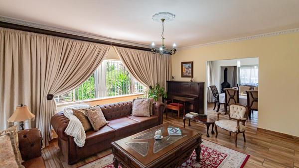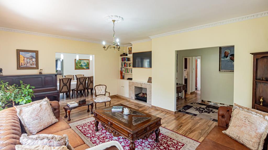 It has been lovingly designed to offer space for all who live there and enjoy it. The formal lounge, with its fireplace, overlooks the garden and leads onto the dining room. The dining room is conveniently just off the renovated kitchen with its Caesarstone counter tops, plenty of cupboard space, double eye level oven and its hob in a centre island that you can sit around and watch the chef at work. Just off the kitchen is a scullery with space for a washing machine and a dryer. On the other side of the dining room, you find the family TV room with a pub and its own cozy fireplace. Behind it, there is a study section which could also be a play area. The main bedroom is spacious with plenty of his and her cupboard space and a full ensuite bathroom with double basin, a fabulously relaxing bathtub and a large shower. The other three bedrooms and the full family bathroom are just down the passage. Theres a fifth bedroom upstairs which overlooks the garden on the other end of