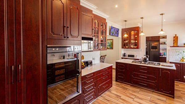 The entrance to this home is though an automated gate, and parking is through automated double garage doors. Security is provided with security beams, electric fence and cameras. It can also be off grid, if you choose, as there is a borehole, two 600l solar geysers, and solar panels with battery back-up and invertor.