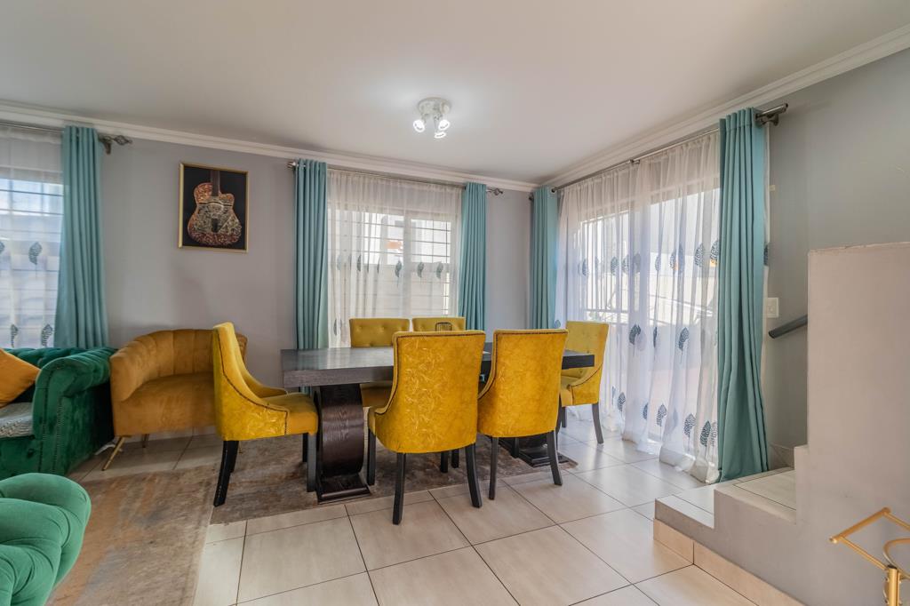 Explore this charming 3-bedroom, 2.5-bathroom duplex, situated in a peaceful and secure complex comprising only four units. All bedrooms are conveniently located on the upper level, featuring a generous main bedroom with an en-suite bathroom, along with a full family bathroom. The ground floor offers a separate kitchen equipped with a gas stove and gas geyser, leading to a bright open-plan dining and lounge area, ideal for contemporary living.