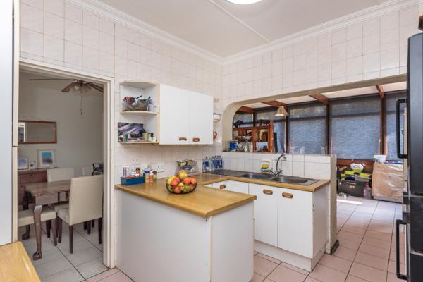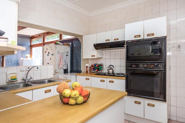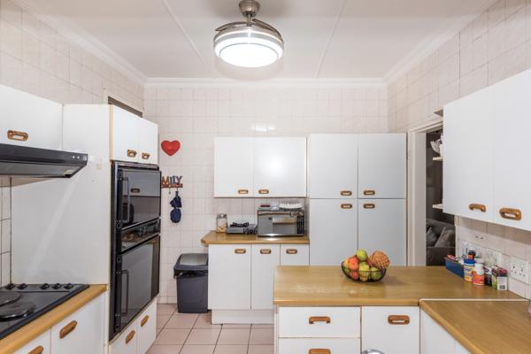 Moving through the home, youll find a spacious lounge that provides a welcoming and relaxed atmosphere for everyday living. The adjacent dining room is ideally positioned next to the kitchen, creating a practical flow for family meals and entertaining. While not oversized, the kitchen is well-equipped with ample cupboard space, melamine countertops, a double eye-level oven, electric hob, and extractor fan all designed to make meal prep both easy and efficient.