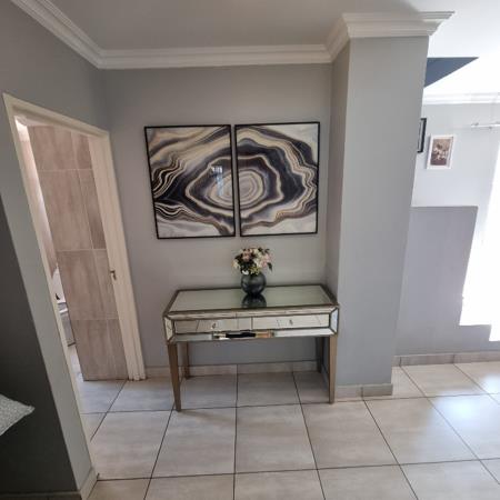 6th ave. Edenvale. Short walk to Holy Rosary school, Dunvegan Primary & Edenvale High school. 155 sq m under roof. Double Storey 3 bed 2 baths. Modern Granite kitchen. GAS stove. Space for 3 appliances. Pantry. Guest toilet downstairs. DBL remote garage and DBL covered carport. Excellent security. Trellis doors and burglar bars on windows. CCTV camera. Aluminum windows. Excellent buy. 100 bond only R14,800 pm. Seller can assist with bond and transfer cost, if required. T,s & C,s apply. Pre paid electricity cost R500 to R700 pm.