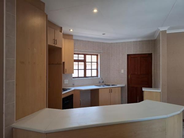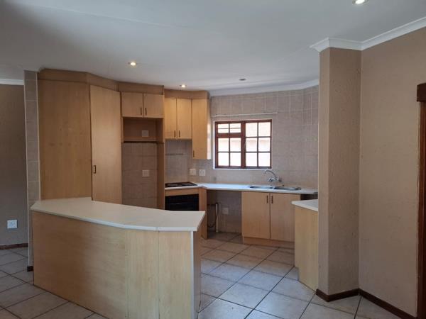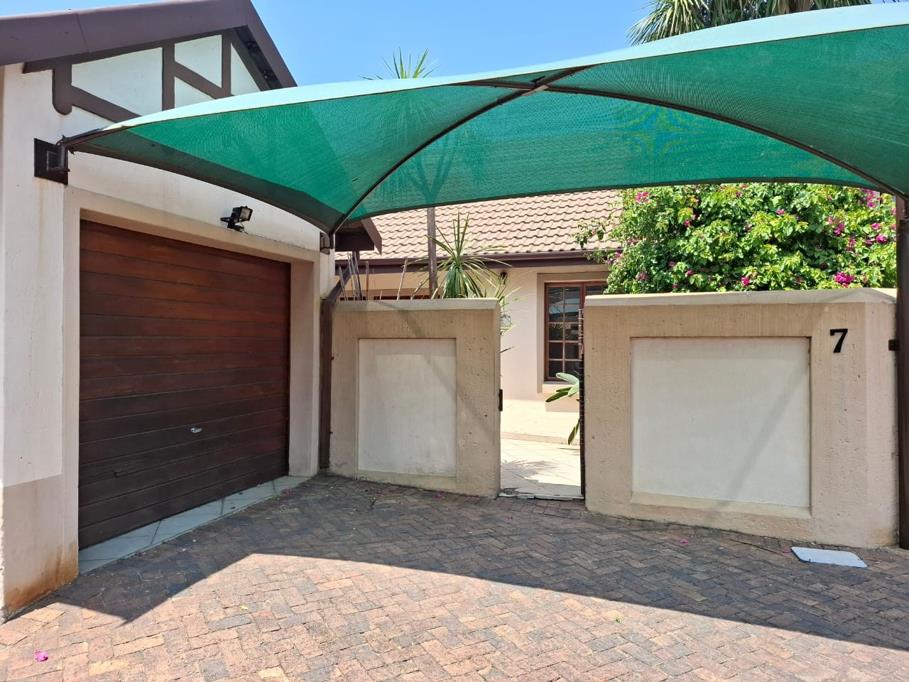 Charming unit for sale in the secure complex of The Tudors. Sunny open plan lounge and dining area opening up into the garden. Kitchen with ample cupboard space facing the living area so you can enjoy cooking while chatting with your family. Two of the bedrooms have en-suite bathrooms and the third bedroom could also be used as study. Garage and carport with an extra parking so there is more than enough for spots for you to park.