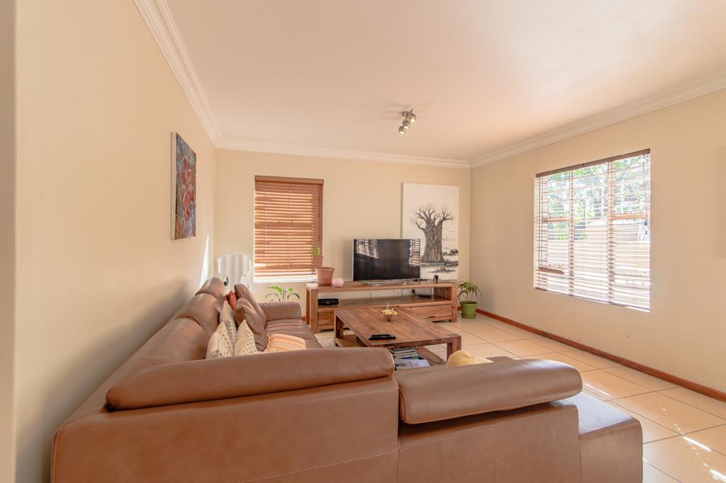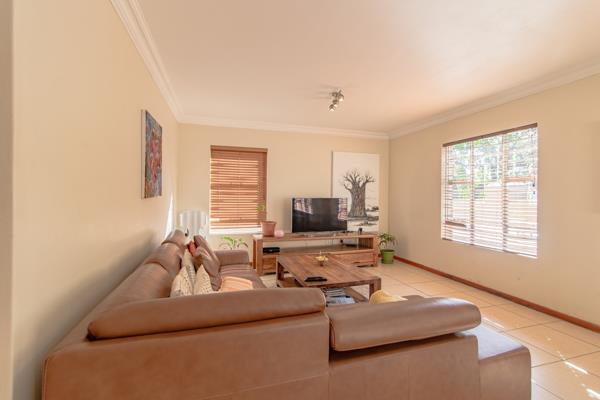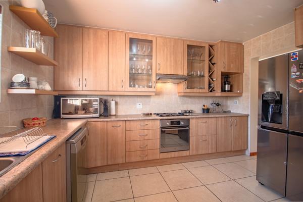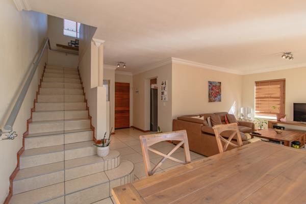 Upstairs, youll find three spacious bedrooms, including a main en-suite, all designed for privacy and comfort. The ground floor features a bright open-plan lounge and dining area that flows effortlessly to a covered patio, ideal for entertaining or relaxing outdoors. The separate kitchen is well-equipped with a gas stove, gas geyser, ample cupboard space, and connections for all major appliances including a dishwasher, washing machine, dryer, and fridge.