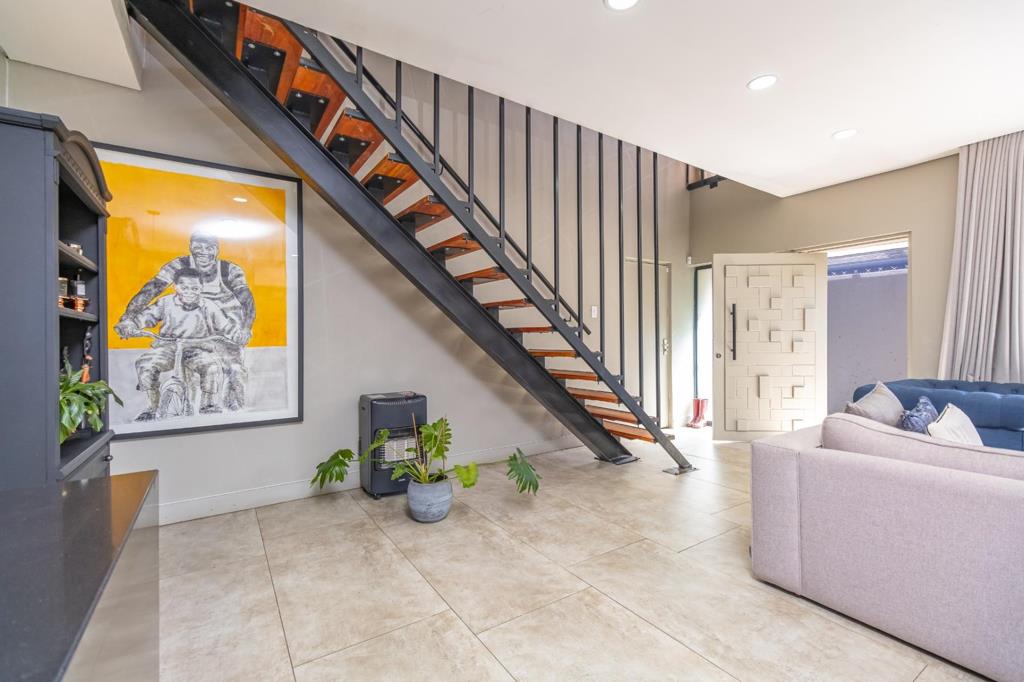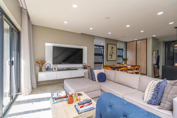 Light-filled open-plan living spaces create a warm, welcoming atmosphere and flow seamlessly into the enclosed braai room ideal for relaxed entertaining with family and friends. Sliding doors open onto the garden, ready for your own landscaping vision.