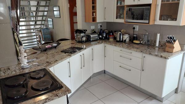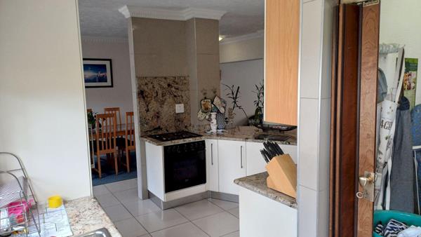 Modern living in a townhouse offering a perfect blend of space, comfort, and convenience. Three bedrooms and two bathrooms are on offer. The open-plan lounge and dining area flows from the modern kitchen into the private garden. The kitchen features a breakfast nook, granite countertops, a scullery, and a pantry, with a back door leading to a private yard and washing line.