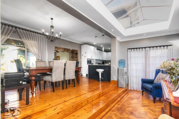 Natural light floods the home, especially in the sunroom off the dining area, creating a seamless indoor-outdoor flow. Stackerfolding doors open onto a sparkling swimming pool and lush landscaped gardens, inviting effortless relaxation and elegant gatherings.