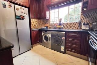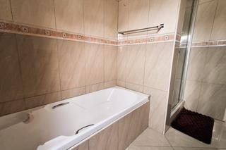 Discover this inviting 2-bedroom, 1-bathroom apartment in Eden Glen, Edenvale, South Africa. The open-plan living area flows into a well-appointed kitchen featuring dark wood cabinetry, granite countertops, a mosaic tile backsplash, and integrated appliances including an oven, hob and space for a washing machine. Both bedrooms offer built-in wardrobes and tiled floors. The modern bathroom includes a bathtub and a separate glass-enclosed shower. Residents enjoy a private patio, communal pool, garden, clubhouse with a braai area, and one dedicated parking bay. This secure complex provides 24-hour security, access control, electric fencing, intercom, and fibre internet.