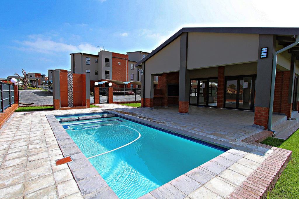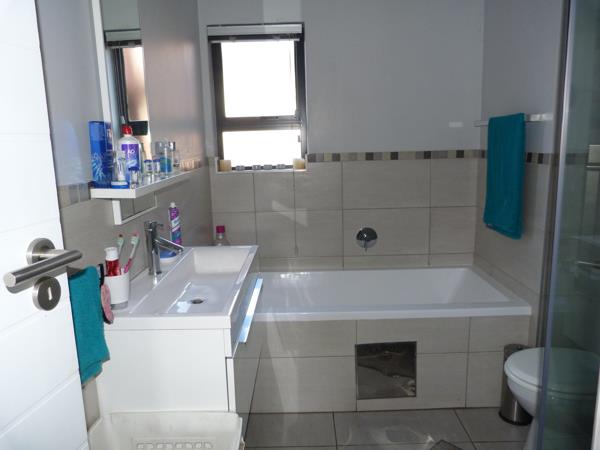This modern 2 bedroom 2 bathroom ground floor unit boasts a very modern open plan kitchen with ceramic stove, under-counter oven, extractor fan, granite tops and a breakfast nook overlooking the open plan lounge that has sliding doors leading onto your very own covered patio and private garden. Both bedrooms have built-in cupboards and the main bedroom has an en-suite bathroom (comprising a shower, basin and toilet) as well as a door leading onto your private patio. The second bathroom is a full bathroom comprising a bath, shower , basin and toilet.