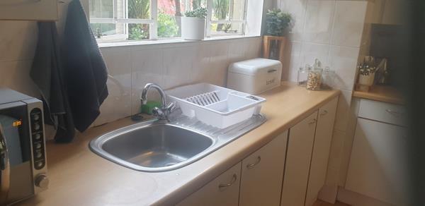 Kitchen descriptionWhite melamine with melamine tops. Plumbed for one appliance