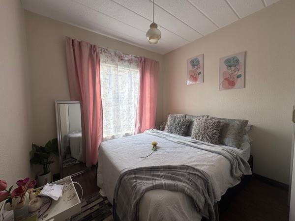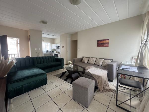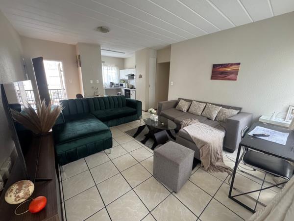 Upstairs apartment offering 3 Bedrooms and 2 Bathrooms MES. Open plan kitchen and lounge leading onto small covered balcony. 1 Covered parking and 1 Open parking. Complex offers pre paid electricity, fiber, night guard, swimming pool and clubhouse.