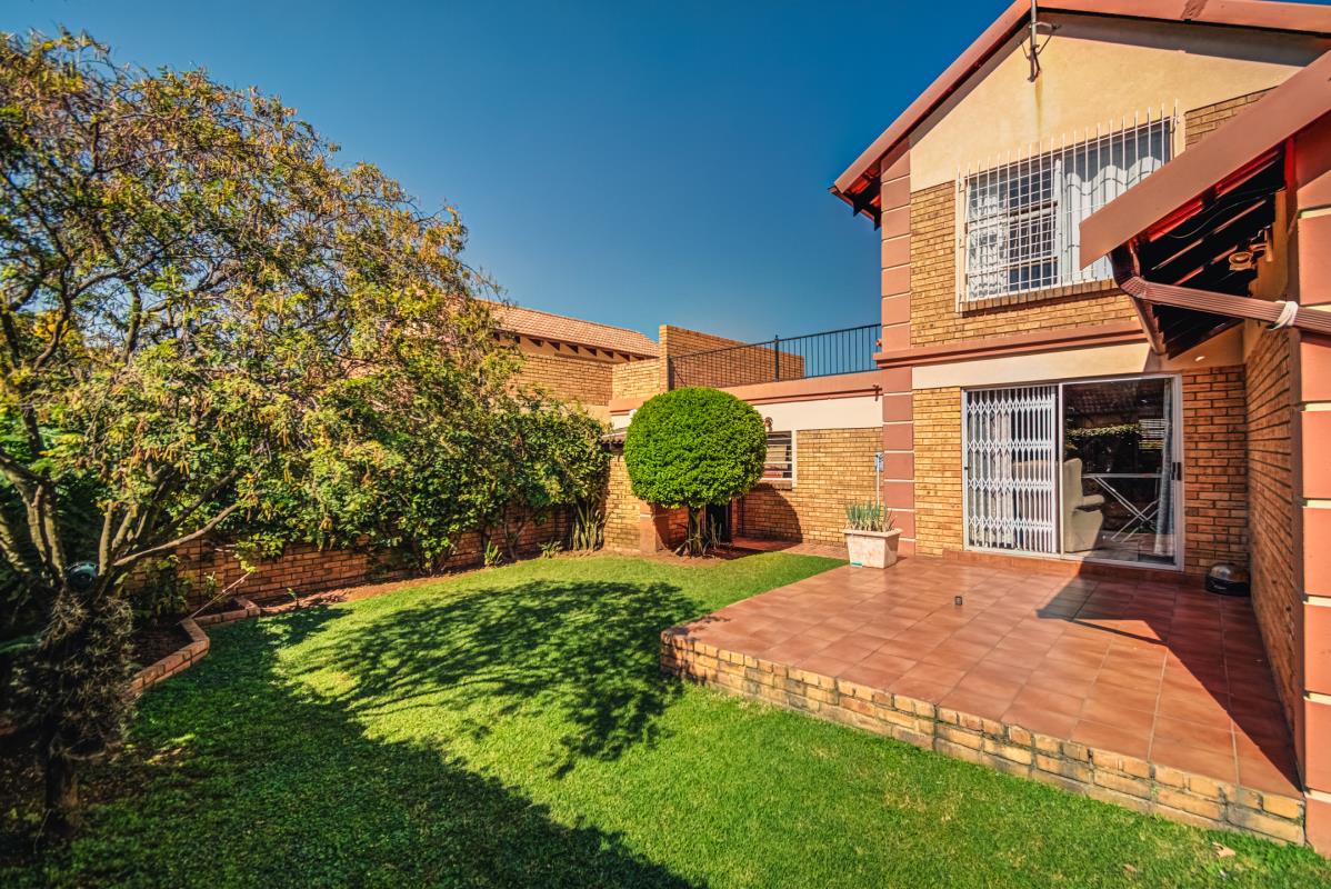 Braai area leads to a pristine, manicured garden, ideal for outdoor dining and leisure.