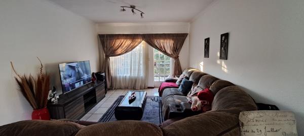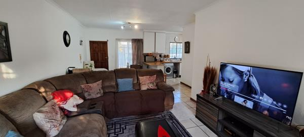 This modern unit offers 2 bedrooms and 2 bathrooms, with an open-plan kitchen, dining area, and lounge that flows out onto a covered balcony. The home includes prepaid electricity and water, one carport, and an additional open parking bay.