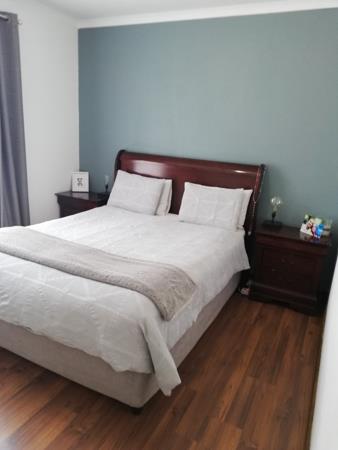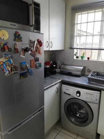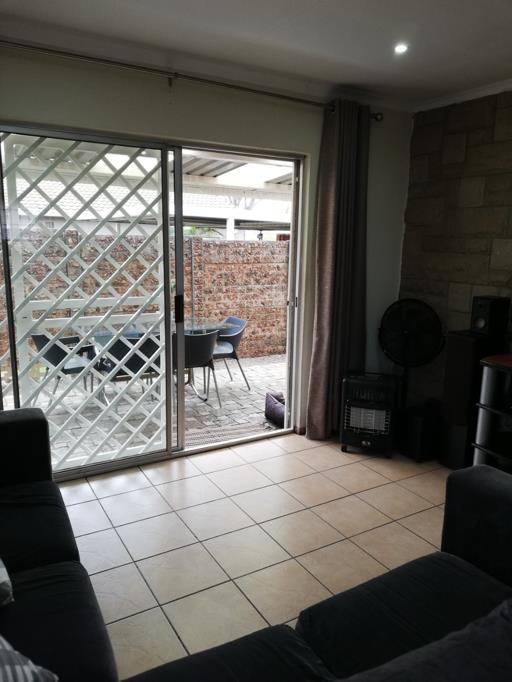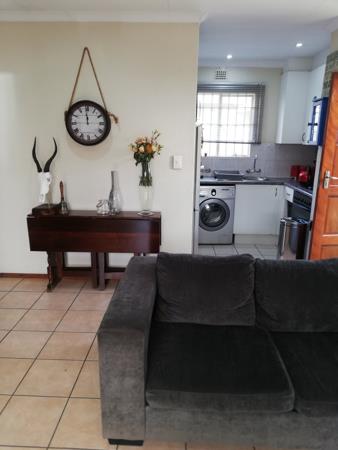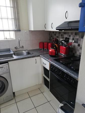The complex has 24 hour security and is close to shops and schools. It has a modern kitchen with a wrap around garden and covered patio. Prepaid electricity . One carport. Both bedrooms have laminate flooring. Full bathroom. There is a pool and braai area in the complex.
