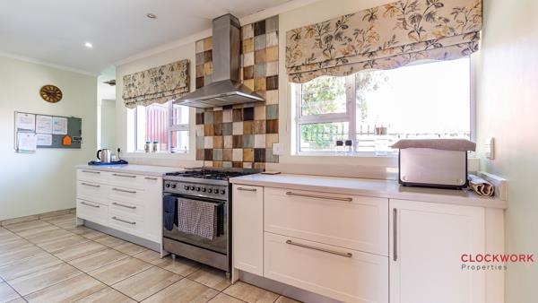 Step inside to find a spacious open-plan lounge and dining area, ideal for family living. The modern kitchen features ample cabinetry, a gas stove, and a separate scullerylaundry for added convenience.