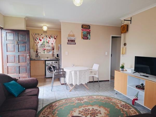 NEAT AND TIDY! Discover this lovely 2-bedroom, 1-bathroom home, perfectly nestled in a secure complex in Eden Glen. This cozy 46 sqm unit is designed for easy living, featuring an open-plan layout that effortlessly connects the lounge and kitchen areas. Two bedrooms and one full bathroom. The lounge area opens out to a covered, tiled patio area perfect for meals and entertaining.