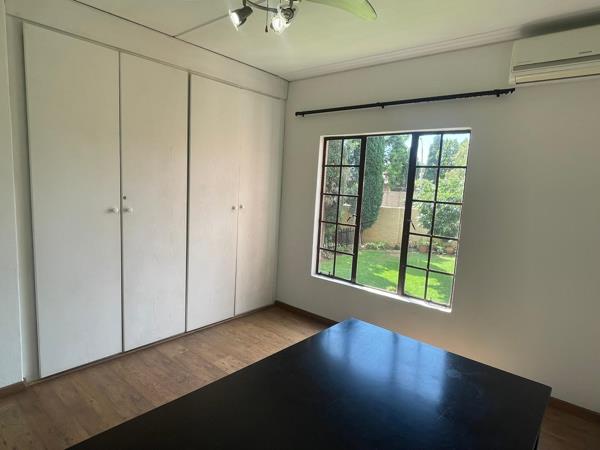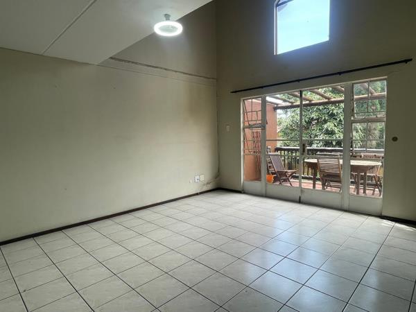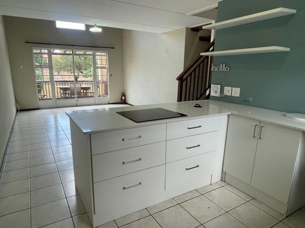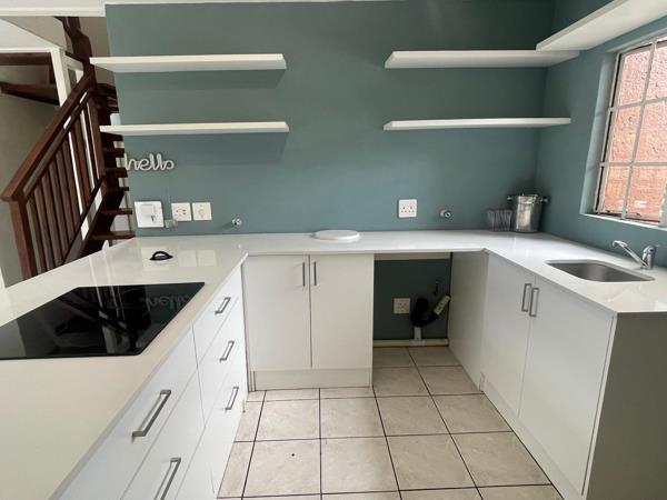 This lovely first-floor 3-bedroom, 2-bathroom townhouse offers 106m² of peaceful, spacious, and private living. The open-plan lounge features a striking double-volume ceiling, flowing seamlessly into a renovated kitchen with Caesarstone countertops, space for two under-counter appliances, and a large breakfast nook. Step outside onto your exclusive open patio overlooking beautifully manicured gardens perfect for relaxing or entertaining.