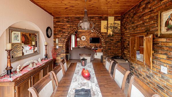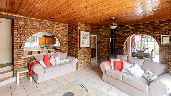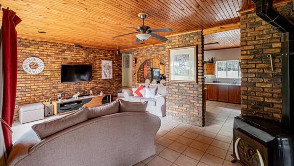 An enclosed entertainment area with a built-in bar and braai makes this home ideal for entertaining. Additional features include a swimming pool, storage shed, and an outside office suitable for work-from-home use.