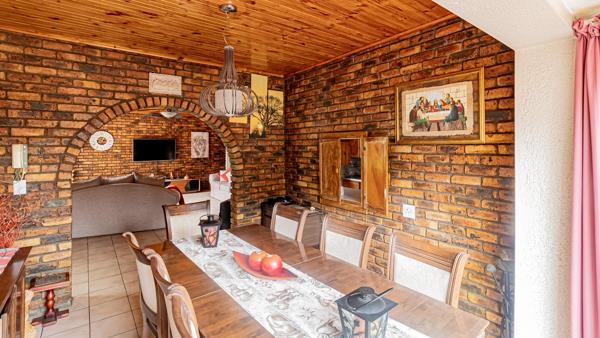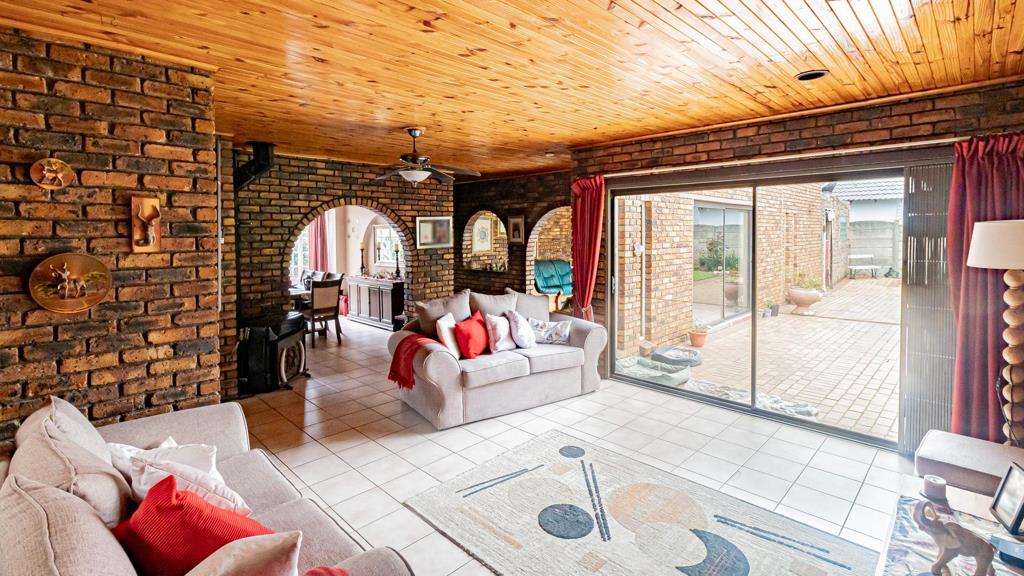 This spacious facebrick four-bedroom home is located in a secure and well-established residential area. The open-plan kitchen with separate scullery flows into the lounge and overlooks the outdoor entertainment area, complemented by a TV room and dining room.