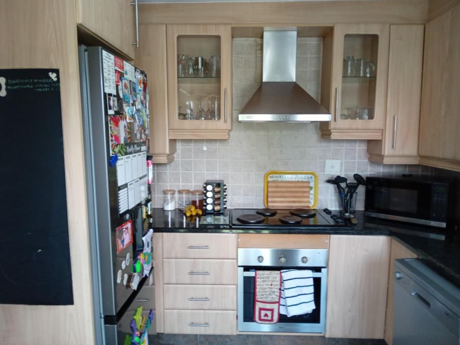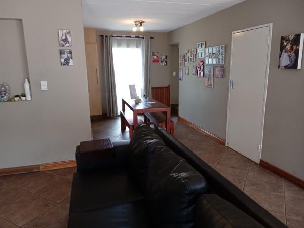 This 126 sqm residential property in Eden Glen, Edenvale, offers comfortable living within a secure complex. The interior features three bedrooms and two bathrooms, alongside a functional kitchen equipped with modern integrated appliances, light wood-tone cabinetry, and dark countertops. Enjoy a dedicated lounge, dining room, and family TV room, all with durable tiled flooring. Outdoor amenities include a private tiled patio, front and back garden, and access to a communal pool and braai area, perfect for relaxation. The property benefits from excellent security, including 24-hour security, electric fencing, access gates, and an intercom system, ensuring peace of mind. Fibre connectivity is available, and pets are allowed.