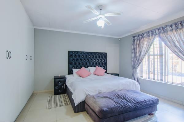 The home offers spacious bedrooms and modern bathrooms. It includes a double garage and two carport parking spaces. This low-maintenance face brick home also features a garden, is pet-friendly, and is an entertainer''s dream.