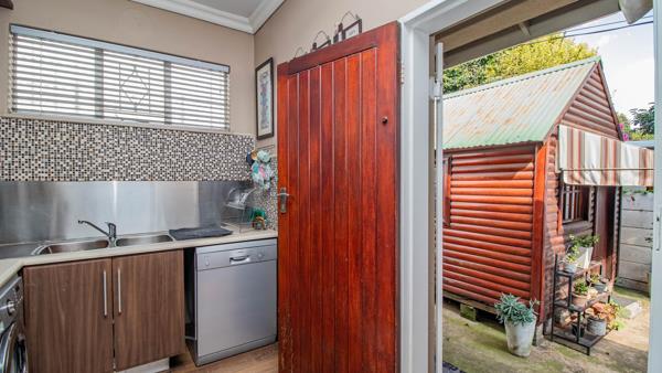 A charming wooden shed has been cleverly converted into a dedicated laundry area, ensuring convenience while keeping the home neat and organised.