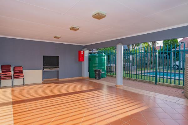 The complex provides excellent security, including a guard house, 24-hour security, and a security checkpoint. Residents can also enjoy a communal pool and braai area. The unit includes one carport, a patio with a garden, and is pet-friendly. It is conveniently located near local schools and shopping centers.