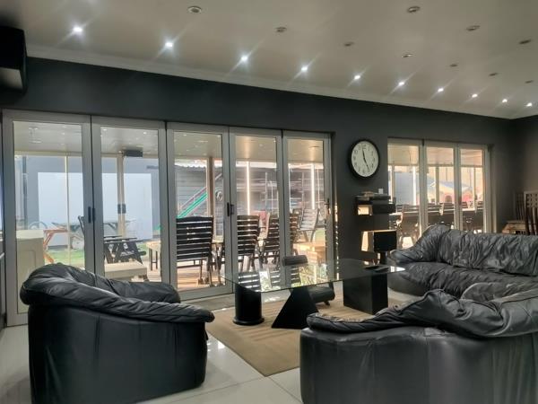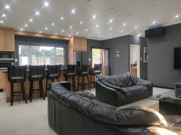 Enter this beautifully renovated family home (within the secure Edenglen boom) offering exceptional amounts of living and entertainment space. The entire house has alluminium windows and doors and is fitted with porcelain tiles throughout. Featuring 4 spacious bedrooms and 3 bathrooms (one main-en-suite). The centre piece of this home is the open plan lounge, kitchen and dining room, an ideal space for entertaining family and friends. Flowing from this area is a very large sunroom, with a built in coffee station, which opens out by way of stacking doors, as an additional space for family gatherings on warmer summer days. The kitchen boasts granite tops and both a gas and electric hob, set in a large centre island with plenty of seating at the counter.