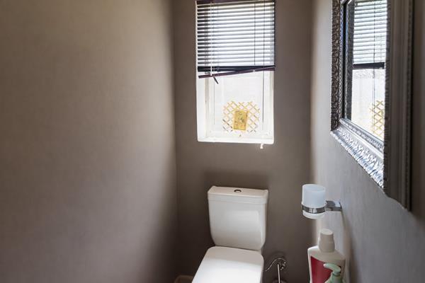 The home offers 3 well-sized bedrooms with built-in cupboards and abundant natural light. The main bedroom includes a modern en-suite shower, while the guest bathroom is beautifully designed with a walk-in shower, floating bath, and double basins for a luxurious feel. Every space has been thoughtfully designed to provide both style and practicality for everyday living.
