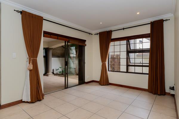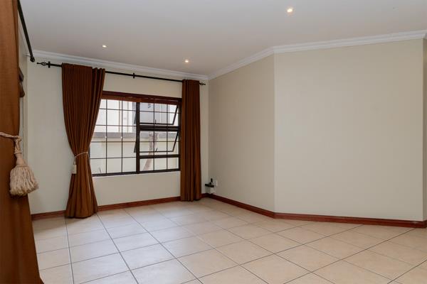 The spacious lounge and dining area flow effortlessly onto a covered patio with a built-in braai an ideal space for entertaining overlooking a neat, low-maintenance garden.