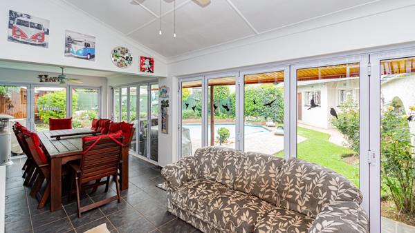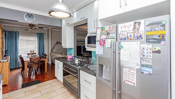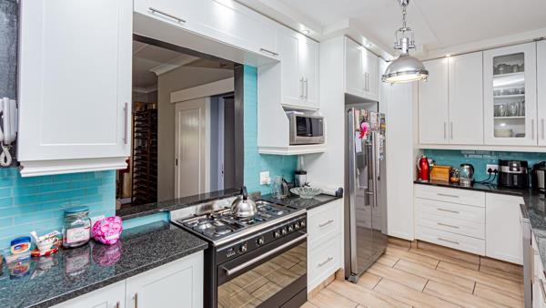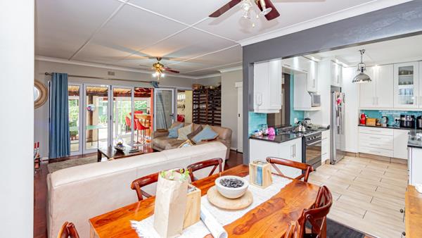 The heart of the home is a well-appointed kitchen designed for both everyday living and entertaining. Enjoy ample cupboard space, granite countertops, a five-plate gas stove with oven, and space for a double-door fridge. The open-plan lounge and dining area flow effortlessly into an enclosed entertainment space boasting a built-in bar and covered patio all overlooking a beautifully manicured garden, perfect for hosting family and friends. There is a family sized pool too.
