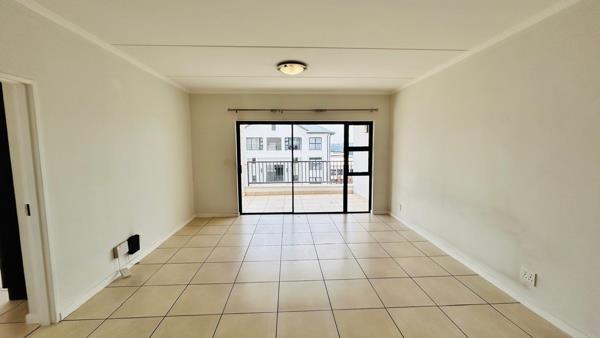 Step into a bright, open-plan living area that flows effortlessly into a sleek, modern kitchen. This space features elegant Caesarstone countertops, a gas hob for efficient cooking, and a full suite of essential eco-friendly Defy appliances (including a fridge, washer, and dryer). The living area extends gracefully onto your private covered balcony, providing a tranquil elevated spot to enjoy the fresh air and estate views. The two comfortable bedrooms, featuring ample built-in cupboards, include a master suite with a private en-suite, guaranteeing convenience and a personal retreat.
