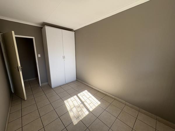 This well-kept two-bedroom, two-bathroom home offers a comfortable and functional living space, featuring a spacious lounge and carpeted flooring throughout. The kitchen is equipped with granite countertops, providing a durable and modern finish. Ideal for easy living, this home combines practicality with a warm, inviting atmosphere. The complex has a swimming pool and club house. NO TRANSFER DUTY BUT TRANSFER COSTS STILL APPLY.