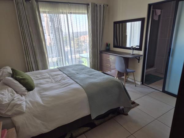 The bedrooms have spacious built-in cupboards and can accommodate a double- or queen-sized bedroom without restricting movement. The main bedroom has an en-suit bathroom that consists of a spacious shower, single vanity and toilet.