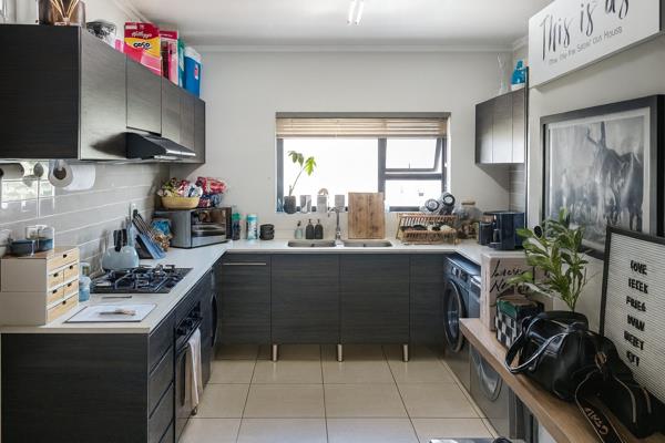 This modern apartment is within a secure estate with 24-hour guard security. It boasts of an open plan kitchen with quality finishes, a lounge and dining areas.