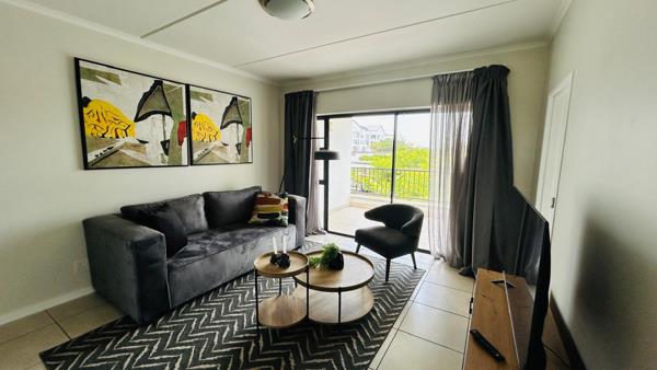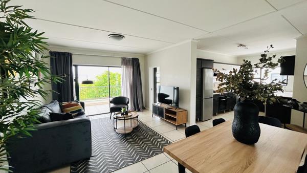 Step inside to a beautifully appointed, open-plan living area that flows seamlessly into a sleek, modern kitchen. This kitchen is a true highlight, featuring elegant Caesarstone countertops, a gas hob for efficient cooking, and a full suite of high-quality Defy appliances (including a fridge, washing machine, and tumble dryer). The living space extends gracefully onto your private covered balcony, providing a tranquil elevated spot perfect for outdoor dining or unwinding with a view. The apartment offers three spacious bedrooms with ample built-in cupboards, including a luxurious master suite with its own en-suite bathroom, ensuring a private and comfortable sanctuary.