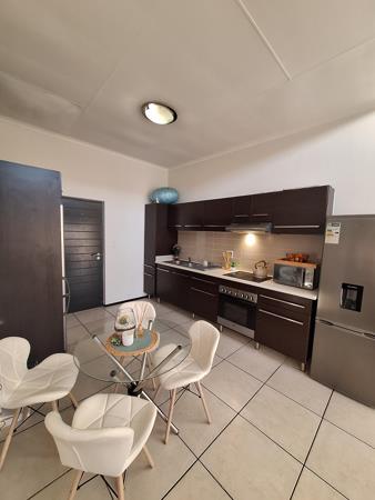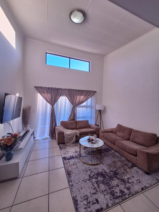 Just right! Well priced! Light and Bright ! Neat and modern 2 bedroom and 2 bathroom apartment on the top floor. This means optimum privacy and security. Double volume ceilings !The complex is Strelitzia and is situated in the heart of Greenstone. Well managed complex offering a pool, gym, laundry service and squash court for your convenience and relaxation. This charming apartment includes an open plan dining area , lounge and kitchen. Ample dark wood kitchen cupboards PLUS A WASHING MACHINE,TUMBLE DRYER AND FRIDGE. The stove has an electric hob and oven. The main bedroom has an en-suite bathroom with a shower and the second bathroom includes a shower and bath. One dedicated under cover parking with lots of visitors parking. Close to major highway arterials, popular shopping malls, restaurants and medical centres. This is a great opportunity for a first time buyer! No transfer duty! The furniture in this ad is not representative of this unit. Call me to arrange a viewing