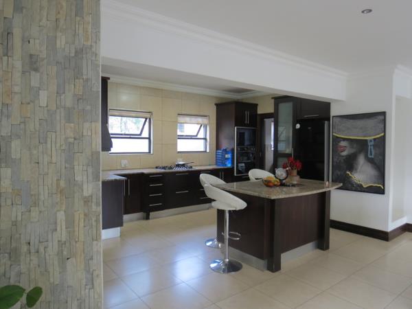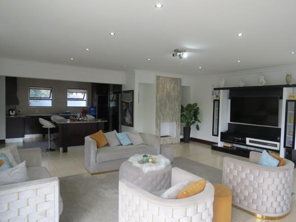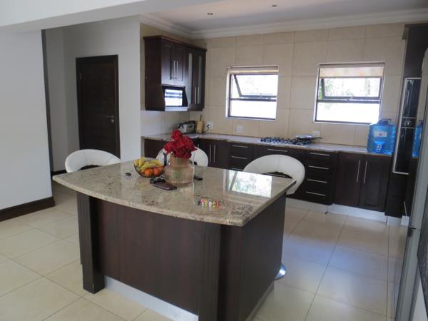 The kitchen is a chefs dream, featuring a central island, walk-through pantry, and an attached scullery for added convenience. A guest bathroom and under-stair storage are cleverly positioned on the ground floor. The spacious living area is warmed by a gas fireplace and opens out through folding doors onto a covered patio, perfect for indoor-outdoor living. From here, enjoy views of the expansive, landscaped garden, an ideal space for children to play or hosting weekend braais.