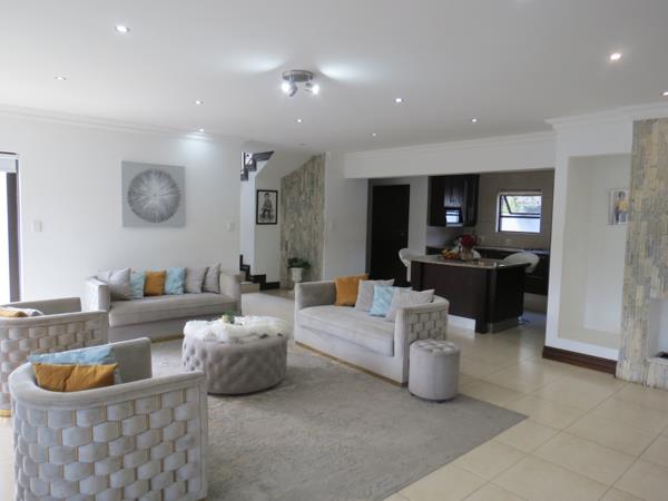 Upstairs, youll find three generously sized bedrooms and two full bathrooms, including a main en-suite. The pajama lounge offers an additional relaxation space, perfect for family movie nights or a quiet reading corner. The two bedrooms also features a shared balcony, offering a peaceful retreat with garden views. The main bedroom is spacious with ample cupboard space, an en-suite bathroom and a private balcony.