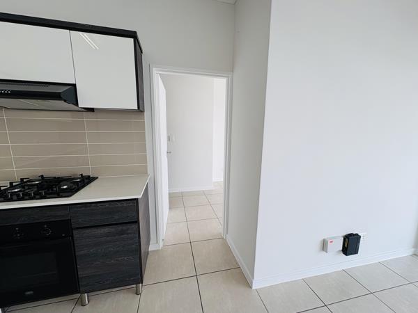The apartment offers a sleek open-plan design, seamlessly integrating the kitchen, dining, and living areas into a functional yet inviting space. The kitchen boasts Caesarstone countertops, eco-friendly appliances, and high-quality finishes a combination of style and practicality. Flowing naturally into the lounge, the space opens onto a private balcony, perfect for morning coffees, sundowners, or entertaining friends in comfort.