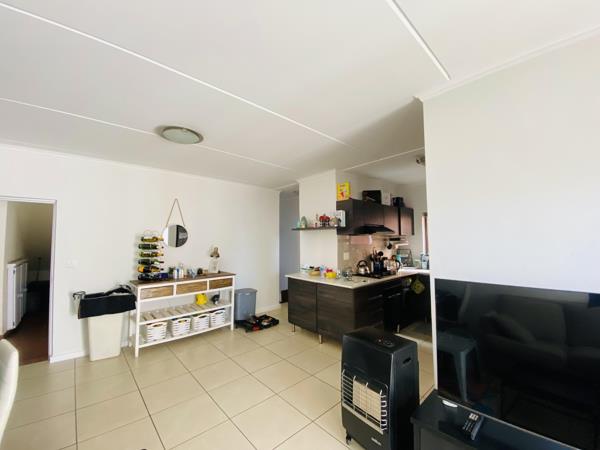 The homes focal point is a superbly designed open-plan kitchen, complete with elegant Caesarstone countertops and a full suite of premium Defy appliances, including a fridge, dishwasher, washing machine, and tumble dryer. This functional, sleek space flows effortlessly into the bright dining and lounge areas, which open directly onto a covered patio and a large private gardena tranquil setting for relaxing, entertaining, or hosting weekend braais.