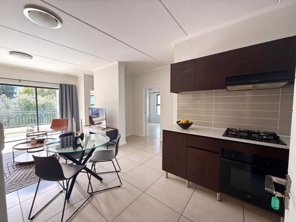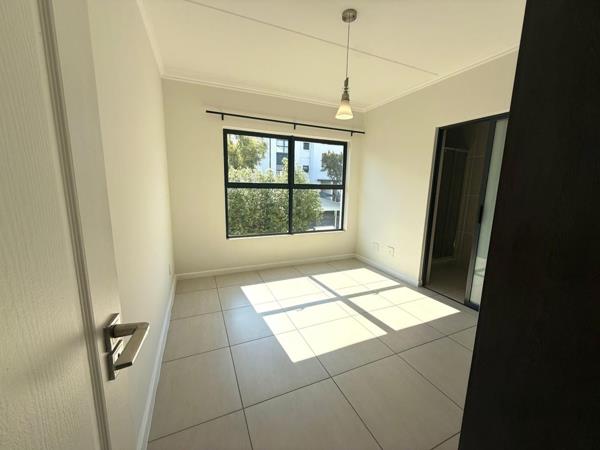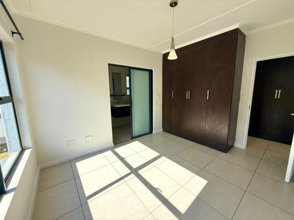 The open-plan living area flows seamlessly onto a private balcony, perfect for relaxing or entertaining. The modern kitchen features sleek finishes, ample storage, and space for appliances. All three bedrooms are generously sized with built-in cupboards, while the main bedroom includes an en-suite bathroom.