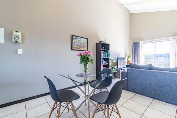 This well-appointed apartment offers comfortable living in a secure and sought-after estate. Both bedrooms are tiled, fitted with built-in wardrobes, and enjoy skyline views. The main bedroom is north-facing, while both share a full family bathroom.