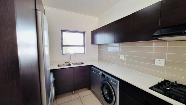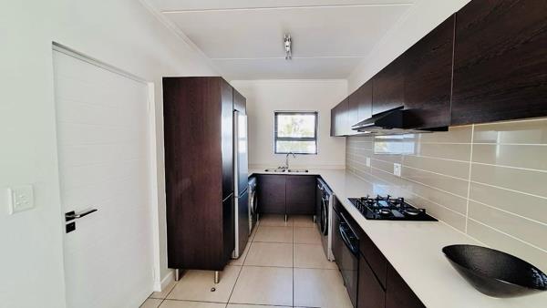 The sun-drenched open-plan interior effortlessly blends modern design with practical luxury. Its anchored by a gourmet kitchen featuring sleek cabinetry, Caesarstone countertops, a gas hob, and a full suite of premium eco-friendly Defy appliances (including a fridge, washer, dryer, and dishwasher). The spacious lounge and dining area seamlessly extend onto your private, covered balcony, creating an ideal setting for entertaining or simply unwinding with serene estate views. The apartments three bedrooms are all peaceful retreats with generous built-in cupboards, highlighted by a luxurious master suite complete with a private en-suite bathroom.