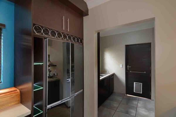 The dinning room seamlessly connects to the living area and kitchen and this space allows a lot of natural light through. The kitchen is spacious with ample cupboard space as well as an attached scullery. The living area leads out onto a large covered patio that overlooks the manicured garden.
