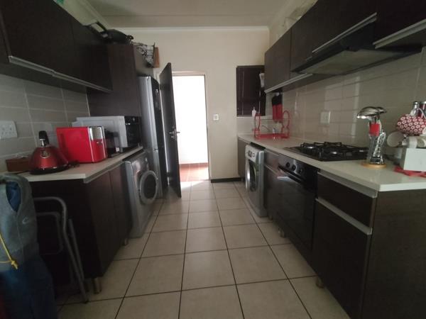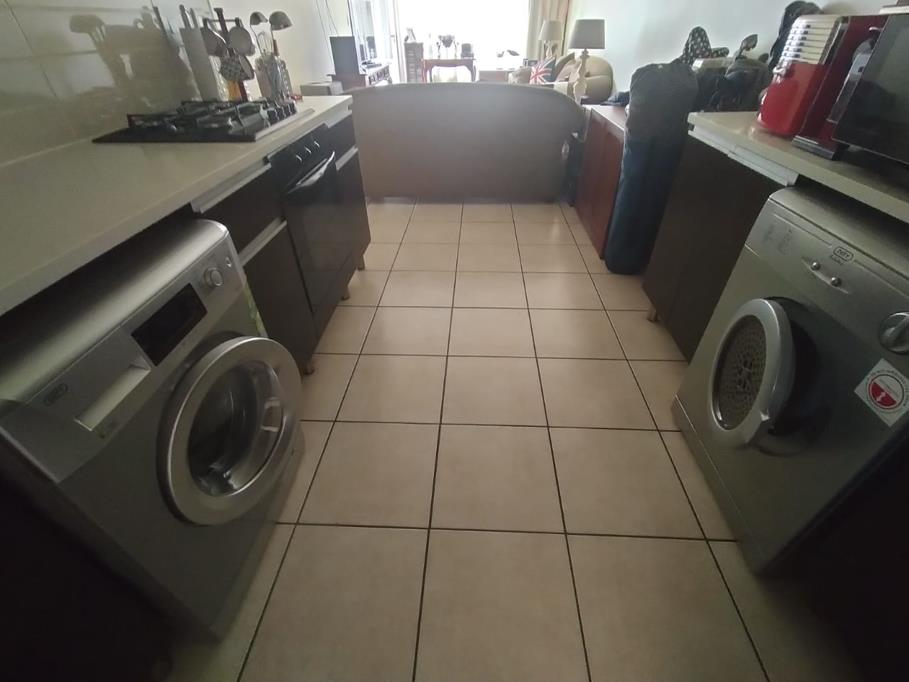 Kitchen, dining, and living areas are all open to each other. The kitchen has all of the large appliances. Gas stovetop and electric oven included. tumble dryer, washing machine, and refrigerator.